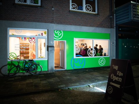 En dan de locatie: de Sittarderweg, tussen de kamerverhuurpanden en tegenover het Lange Jan park. Een plek die bruist van het leven, en waar iedereen elkaar letterlijk op straat ontmoet. Een betere plek voor deze buurtkamer hadden we niet kunnen bedenken.
